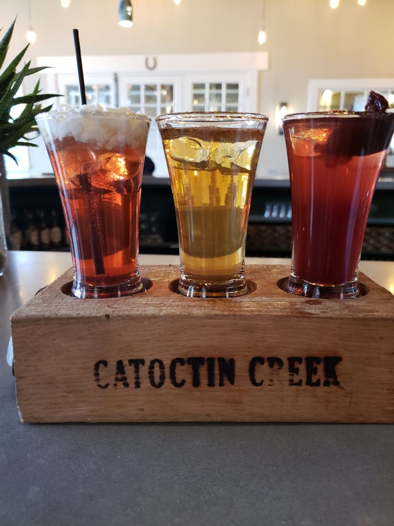 After lunch at Grandale Vinter’s Table (the restaurant) we trekked our way to Cotoctin Creek Distillery. Virginia ABC laws state that you cant have more than 4 pours, and you cant have more than 3 oz of hard liquor. So, I ordered 4 mini cocktails all yielding 0.5 oz of 3 rye whiskeys and a gin.