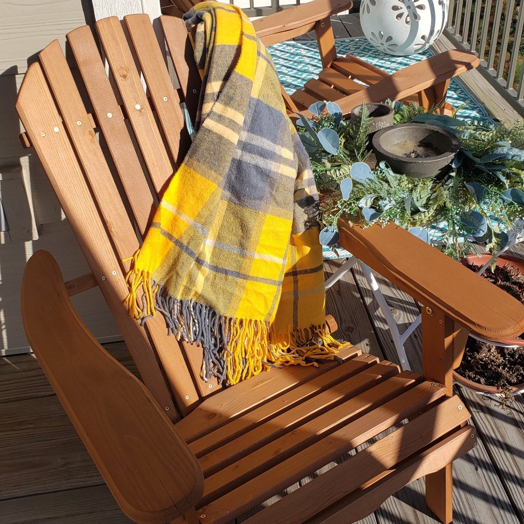 I bought this lovely fall blanket from HomeGoods to bring some color into my rather bland apartment, and I’d say it’s quite the eyecatching block of color.