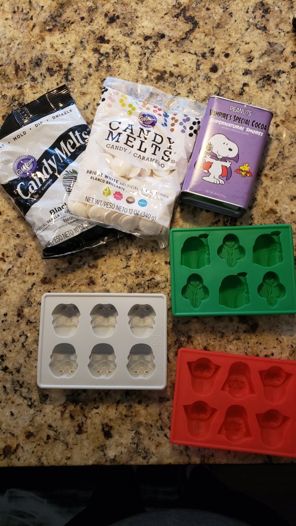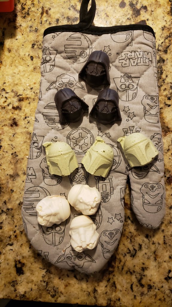 Today, I took off work and made some hot chocolate bombs in the shape of Darth Vader and Stormtroopers, while wearing a Mandalorian sweatshirt.
